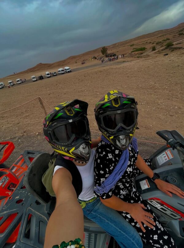 Enjoy an unforgettable evening in the Agafay Desert. Start with 1 hour of quad biking followed by a peaceful camel ride through stunning desert landscapes. Relax by the pool before ending the day with a traditional Moroccan dinner under the stars, accompanied by local music and entertainment.