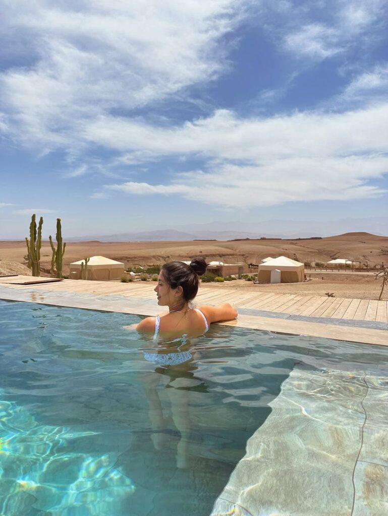 Enjoy a relaxing day in the heart of the Agafay Desert. This package gives you access to our beautiful swimming pool and includes a traditional Moroccan lunch served on our panoramic terrace or shaded patio.